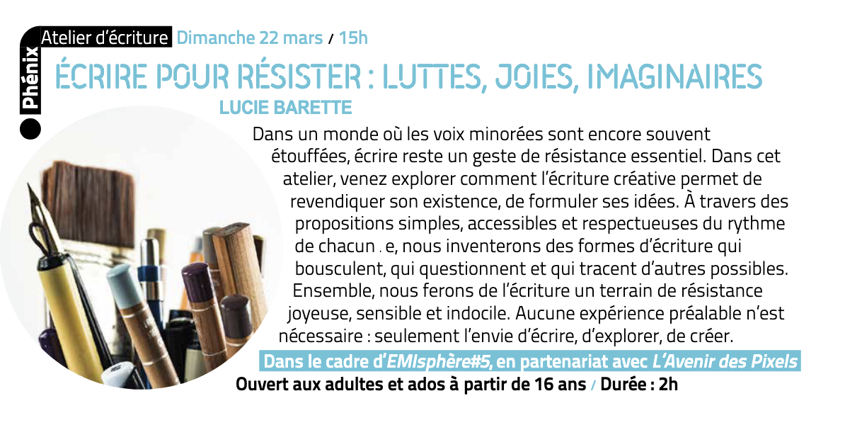 Ensemble, nous ferons de l’écriture un terrain de résistance joyeuse, sensible et indocile.